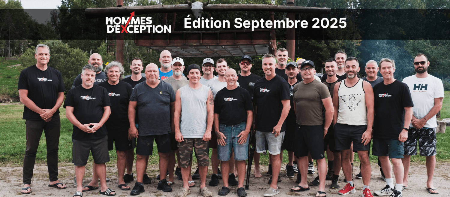 Le prochain Weekend Hommes d'exception en septembre est maintenant COMPLET. Ce sera une édition assurément épique. Si tu souhaites faire partie de la prochaine édition, inscris-toi ici sur la liste d'attente pour la prochaine édition (prévu au début 2026) :