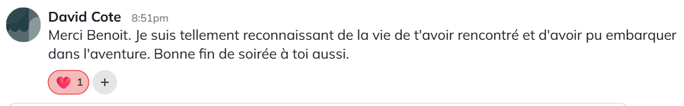"Identifier mes limitations (les fameuses béquilles invisibles comme dit Benoit) et travailler sur eux a fait une grosse différence pour moi. Grâce aux enseignements, j'ai vécu un changement incroyablement positif"